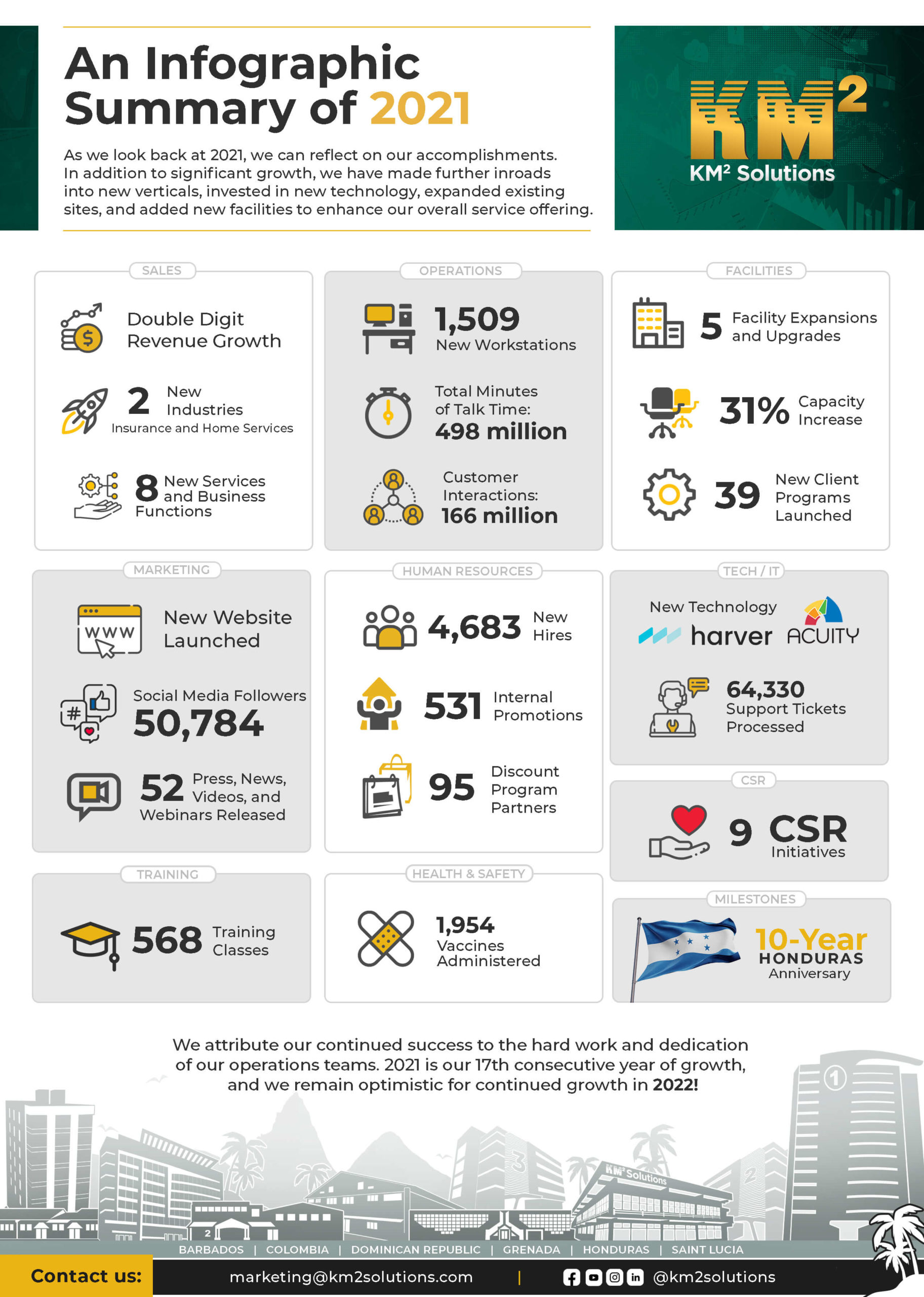 KM² Solutions ( KM2 Solutions ) operates contact centers throughout the Caribbean and Latin America, providing outsourced inbound and outbound customer service contact services for voice, chat, email, and mobile. KM² Solutions provides these services to clients in financial services, multi-unit healthcare, insurance services, travel & hospitality, eCommerce, technology & telecommunications, home services, and other sectors. The company provides clients with a host of solutions, including customer support and care, telesales & retention, claims management & processing, appointment setting & schedule management, loan origination & verifications, back-office processing, and technical support. KM² Solutions maintains PCI DSS compliance, completes a SOC 2 audit annually, and has a Compliance Management System that meets the FDIC standards.